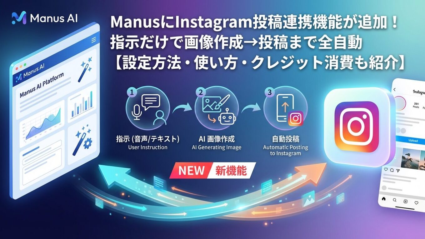 ManusにInstagram投稿連携機能が追加!指示だけで画像作成→投稿まで全自動でやってくれた【設定方法・使い方・クレジット消費も紹介】 2026.03.10 検証 takemako AIライターズラボ