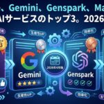 AIはどれも一長一短です。Geminiはハードに組み込まれているから日常に溶け込む。GensparkのAIチャット+Claude Opus 4.6+Nano Banana Proは文章作成も画像生成もコスパが最強。Manus+Claude Code+GitHubは開発を一気通貫で回せる。