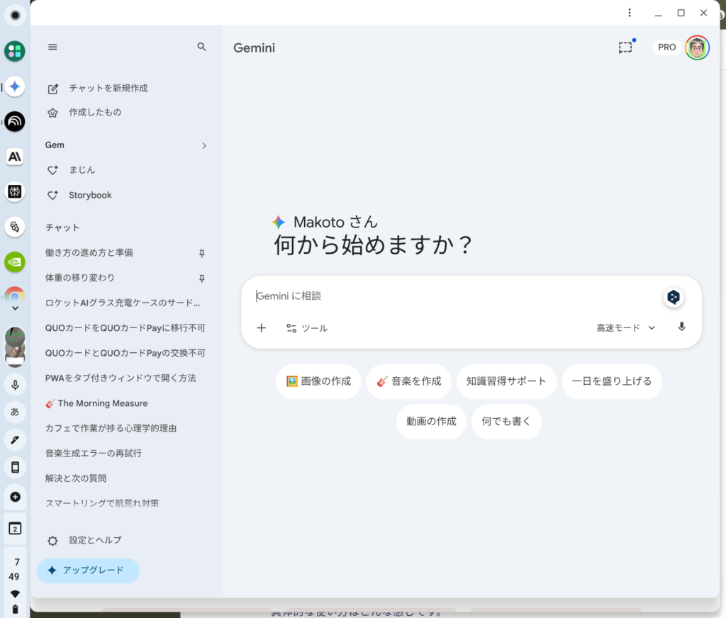 ただ、ブラウザでわざわざ開いて使っている、というわけではありません。AndroidにもChromebookにもGeminiが組み込まれているので、「そこにあるから使う」という感覚なんですよね。