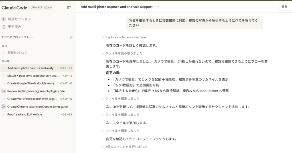 そこで最近は、コードを書く部分はClaude Code on the webでやって、GitHubにプッシュ。