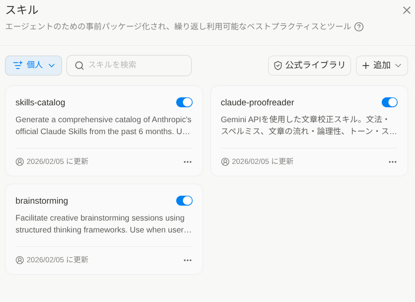 例えば「特定の商品情報をWebで調べて、結果をスプレッドシートにまとめて」といった複合的なタスクも、スキルがあればAIが自動で処理してくれます。