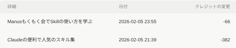 どんなスキルがあるのか眺めてみるだけでも、Manusの活用イメージが湧くと思います。
