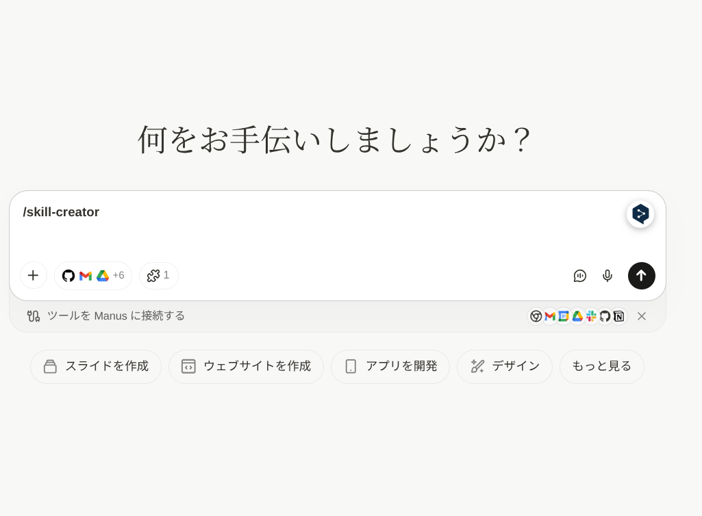 Manusのスキルクリエイターを使って、いくつか個人用スキルを作ってみました。