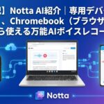 AIボイスレコーダー市場ではPlaud Note Proのような専用デバイスが注目されがちですが、Nottaは「専用デバイス」「ブラウザ(Web版)」「スマホアプリ」の3つの入り口を持っているのがユニークなところ。特にChromebookユーザーにとって、ブラウザだけで音声入力から文字起こし、要約、資料作成までできるのは正直かなりありがたいです。