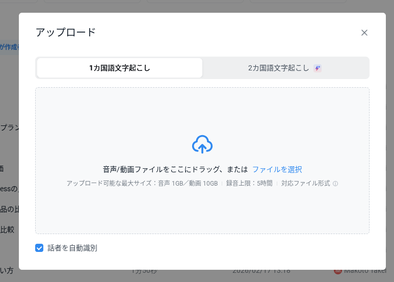 音声ファイルをアップロードして文字起こし