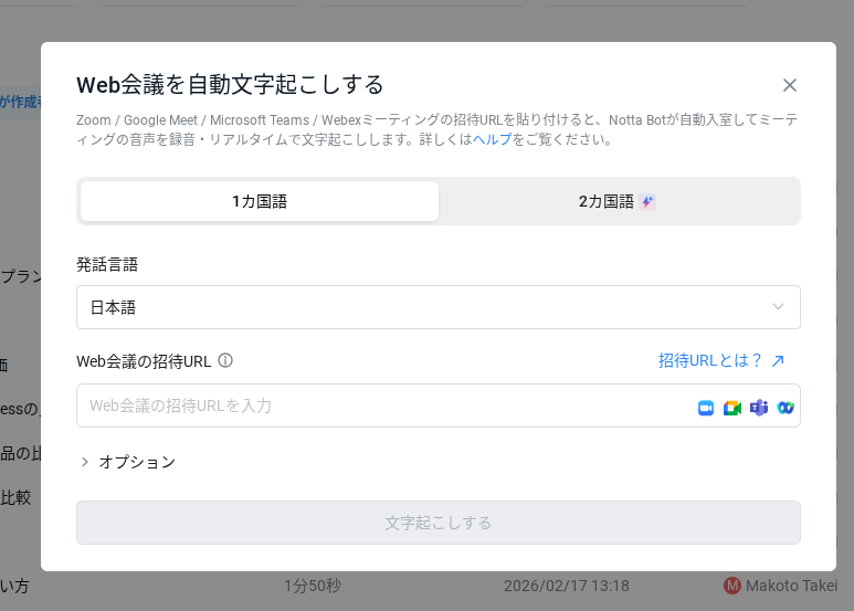 WEB会議のURLを入れるとNottaも参加。